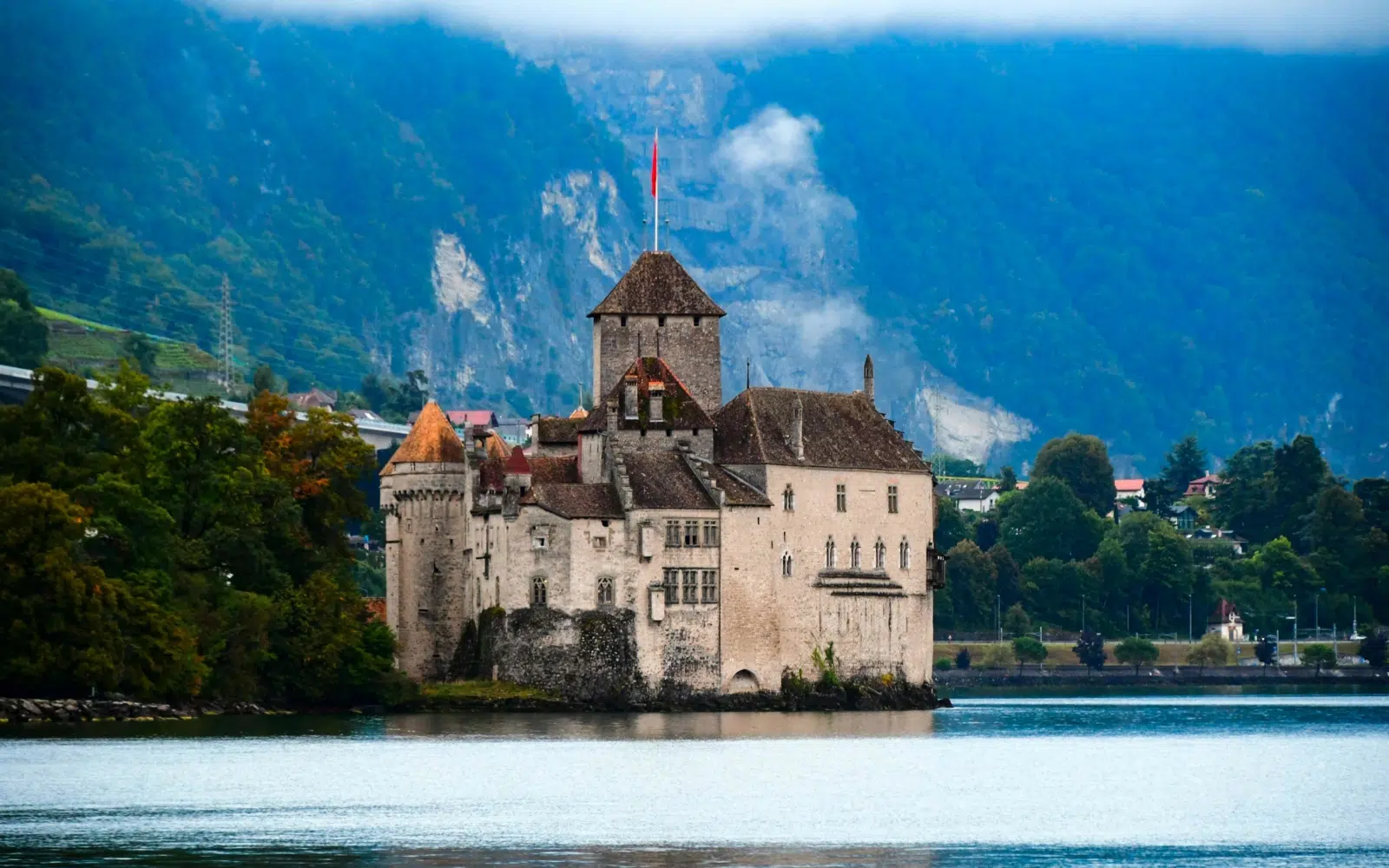 Posé sur un îlot rocheux au bord du lac Léman, le Château de Chillon est l’un des monuments les plus emblématiques de Suisse. Forteresse médiévale superbement conservée, il mêle architecture militaire, résidence princière et vues spectaculaires sur le lac et les Alpes.