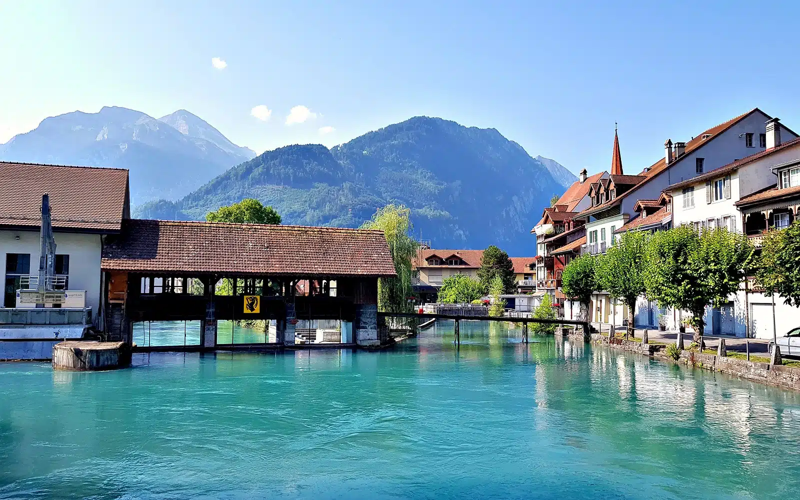 GoldenPass Line : le Luzern-Interlaken Express. Ce train moderne et panoramique remonte les alpages vers le col du Brünig, offrant des vues splendides sur les montagnes environnantes. Pendant que le Luzern-Interlaken Express sillonne les paysages vallonnés de l’Oberland bernois, vous admirez la chute d’eau du Giessbach, les cascades, les pics à l’horizon et les paysages luxuriants de la Suisse verte ou enneigée selon la saison. Après moins de deux heures, vous arrivez à Interlaken, située entre le lac de Thoune et le lac de Brienz.