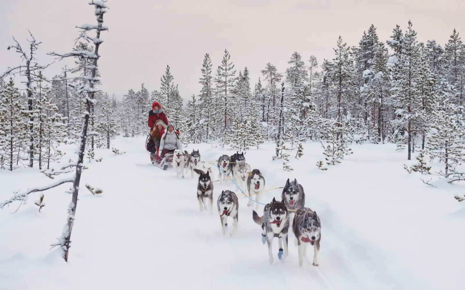 Profitez de ce voyage pour admirer les paysages hivernaux de la Laponie sous le soleil qui l’illumine timidement.
