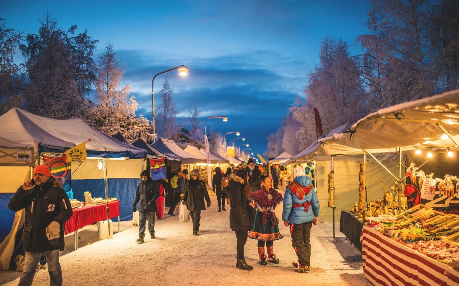 Profitez de cette journée pour vous familiariser avec les traditions des habitants du Cercle Polaire, assister à plusieurs concerts et flâner dans ce marché unique de 2 km de long qui s’étend jusqu’au lac gelé de Talvatis.